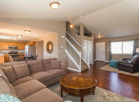 This gorgeous 2 story home offers the ultimate in style, comfort and convenience! Nestled away into the lovely Willowind at Stetson Hills neighborhood, w/ D-49 schools just minutes away, & Laura Gilpin Park just down the street, this home is conducive to many lifestyle needs! Hardwood floor entry, opens to the great room boasting vaulted ceilings and large windows letting the natural light pour in. The spacious kitchen is just steps away, with features such as stainless steel appliances, formica countertops, new cabinet