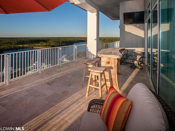 Not Your Ordinary Wharf Condo! Luxury At It's Finest. Gorgeous Upscale Coveted East Corner Penthouse. Relax, Unwind and Enjoy Panoramic Views Overlooking Orange Beach. Direct Views of Intercoastal Canal and Marina. The Wharf's is one of Orange Beach's Most Desirable Complexes. Spacious Wrap Around Balcony Features 1,500 Sq. Ft. Complete with Fully Equipped Outdoor Kitchen and Gas Fireplace. Perfect for Entertainment. No detail spared inside. This Beautifully Furnished Condo Offers Gourmet Kitchen with All Stainless-Steel Viking Appliances, Custom Granite Countertops, Custom Cabinetry, Upgraded Fixtures and Lighting, Heart Pine and Travertine Flooring Throughout, Recessed Lighting and Crown Molding, Custom Built-Ins, Custom Cypress Wood Ceiling in Living Room and Dining Room. Spa Like Master Bathroom With Custom Tiled Walk In Shower, His/ Her Vanities and Jacuzzi Tub. Two Assigned Parking Spots. Indulge Yourself For The Day With Three Outdoor Pools, Including A Zero-Entry Wave Pool, Lazy River, Waterfalls, Whirlpool Spa, Dining, Shopping, Marina & Entertainment. Don't Miss This Opportunity To Own A Piece Of Paradise.
