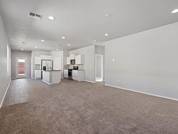 Move in Ready! ''The Scarlett'' by DR Horton. Stunning home. Open great room and dining area invite's easy entertaining. Lots of contemporary kitchen with grey cabinets and white quartz silestone counter tops, kitchen island, Stainless whirlpool appliances and spacious pantry. Ceramic tile floors throughout home except luxury carpet in bedrooms. Large private primary suite ,with raised double vanity, ceramic tiled walk in shower and large walk in closet. Pitched roof with covered patio in front and back of home.. Smart home with Amazon Alexa connect. Energy efficient with Refrigerated air, low- e windows.$5,000 in closing cost + 5.5% fixed rate available.