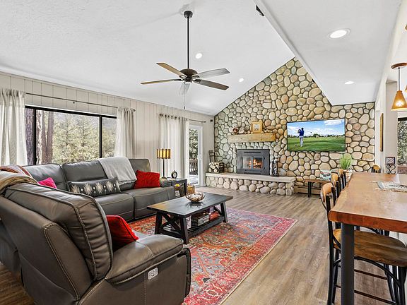THAT VIEW! Here's your chance to own a beautiful cabin on large lot. Big enough for the whole family w/4 beds & 4 baths, incl. dual primary ensuites. HUGE remodel w/new floors, paint in & out, new window treatments, bath remodels & kitchen updates. The list goes on! Get away from it all to enjoy cool nights by the FP. The river rock wall was a true labor of love by the owners. Relax on the wrap around decks w/stunning views of Milk Ranch Point. Finished basement w/2 additional bedrooms, LR & fireplace w/its own exit. Firewised lot. 66 new tons of rock. Plenty of space for RV parking & all your toys w/under deck storage area. New Alternative septic. NO HOA! Close to shopping, dining & hiking trails. Great opportunity for 2nd home, vacation rental or full time residence. This home has it al