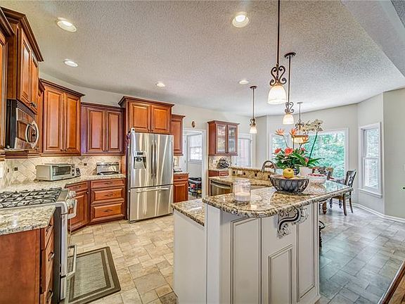 - Kitchen Features: Breakfast Bar, Cabinets Stain, Pantry, View to Family Room, Stone Counters, Kitchen Island