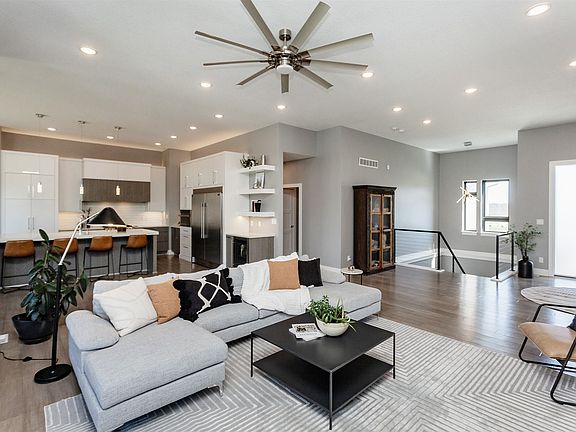 This remarkable 4300+ finished sqft walkout ranch + 4 car garage is nestled on a quiet street & beautiful .37 acre lot backing to timber! You're welcomed to an open floor plan w/ hardwood floors, sprawling 11' ceilings in the main living area & floor-to-ceiling Andersen windows! The great room features a linear gas fireplace w/ tile surround & stunning views. The chef's kitchen has abundant cabinetry, Frigidaire appliances w/ commercial refrigeration & gas range, center island, display shelving, wine fridge & large walk-in pantry. The spacious dining area offers access to the 320 sqft composite, covered deck. Relax in the large owner's suite featuring a dual floating vanity w/ accent lighting, heated tile floors, tile shower, soaker tub & walk-in closet. 2 additional bedrooms share a full bathroom w/ a dual vanity & tub tile surround. A drop zone, laundry room & half bath complete the main level. Switchback stairs lead to an entertainer's oasis in the walkout lower level boasting a sizable family room w/ 2nd linear fireplace & built-ins, a wet bar with an island & full beverage fridge & game table area with slider access to the covered patio. Also find 2 generous-sized bedrooms downstairs sharing a 3/4 bathroom with tile shower, plentiful storage space & half bath for guests. Outside enjoy a 921 sqft 4 car garage, professional landscaping, irrigation, invisible pet fence & mature trees all in a prime location near interstate access, shopping, entertainment & Waukee Schools!