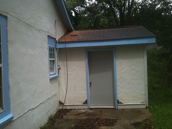 Exterior Features: The roof is in good condition. There are two storage buildings in the backyard which need some significant repairs. The backyard is fenced in. There are two shady trees in the front yard. One of the bedrooms has a door for outside convenience. Interior Features: Ceramic tile in the living room and hallway. Linoleum flooring in the kitchen, dining room, master bedroom, and both bathrooms. Carpet in the other two bedrooms. Plenty of cabinet space in the kitchen as well as in the bathrooms. Tubs in both bathrooms, with sliding shower doors. Microwave and dishwasher included. Carpet is badly stained in the bedrooms. Severe sheet rock damage and floor damage in the washroom. The sink has been removed from the kitchen. Minor repairs needed throughout the house. Ceiling fans in all rooms.