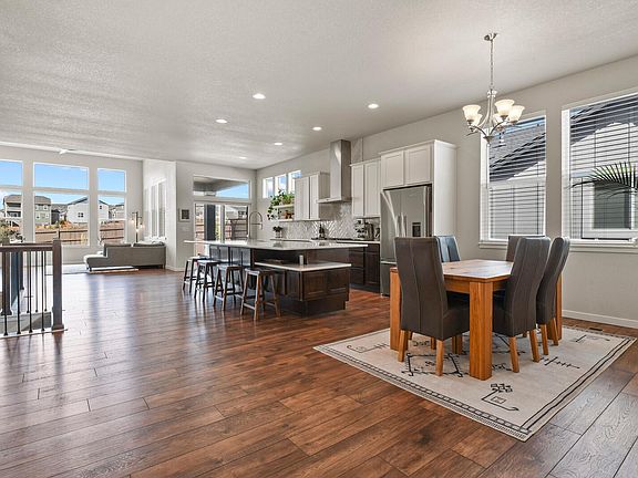 Gorgeous ranch-style home nestled in the desired Cordera neighborhood with amazing views of Pikes Peak, the Front Range mountains, and the iconic Air Force Academy. Step inside to discover a warm and inviting interior adorned with natural elements and tasteful finishes. The open-concept layout seamlessly connects the living, dining, and kitchen areas, creating an ideal space for both relaxation and entertainment. Large windows throughout flood the home with natural light. The heart of the home, the kitchen, features modern appliances and a huge island with ample counter space and seating. The main level offers a spacious master suite, complete with a luxurious ensuite bathroom and walk-in closet and a second room with picturesque views of Pikes Peak, is perfect for an office or as a bedroom. Retreat downstairs to the basement, which offers 2 additional bedrooms for family or guests and a second, large, comfortable living area, perfect for a theater space, playroom, or workout area. Ample storage space available! Outside, the expansive deck beckons for al fresco dining or simply soaking in the serenity of the great outdoors and gorgeous Front Range sunsets. Immerse yourself in the natural beauty of Colorado as you explore the nearby walking paths, or simply relax and listen to the gentle rustle of the trees. Access to the Cordera Community Center with pool and neighborhood events! Walking distance from desirable Chinook Elementary and Middle School. Easy access to I-25, Briargate Shoppes, new hospitals, restaurants, and shopping. Located 25 minutes from Peterson SFB and USAFA! Renter is responsible for utilities (water, gas, electric). One month rent deposit due at signing. Pets subject to approval (no cats) with deposit. No smoking.