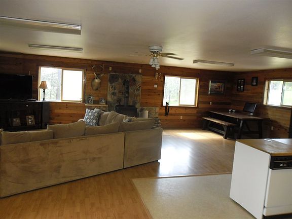 Very nice, private acreage with 4 br 3 ba home. This home was under extensive remodel and the Sellers plans changed. There is work that needs done to finish the home. Most building materials are there and negotiable. 2176 square feet upstairs with full basement the same size. 4.42 gpm well. This property is a hunters dream. 2 ponds. A timber cruise was done with $50K net profit. It borders Springdale Lumber Property. The living room kitchen is open-concept. 30x40 Barn, 32x40 Shop by house.