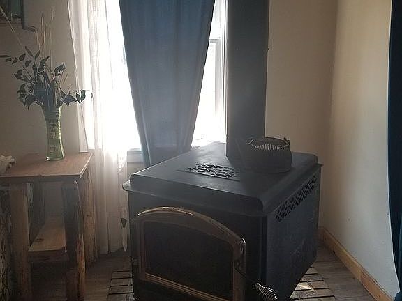 The House is 2 stories. It has 5 bedrooms, 2 bathrooms and a Big Kitchen with logs of cabinets, a dining room and Large living room. The house heats up really warm in the winter with the wood stove and the house can stay cool in the summertime. There is a nice covered wood shed. The house has a nice metal roof which will last many more years. The Garage is 1500 (30'x40' plus a 15'x15' section.) square feet with cement floor and a newer metal roof.