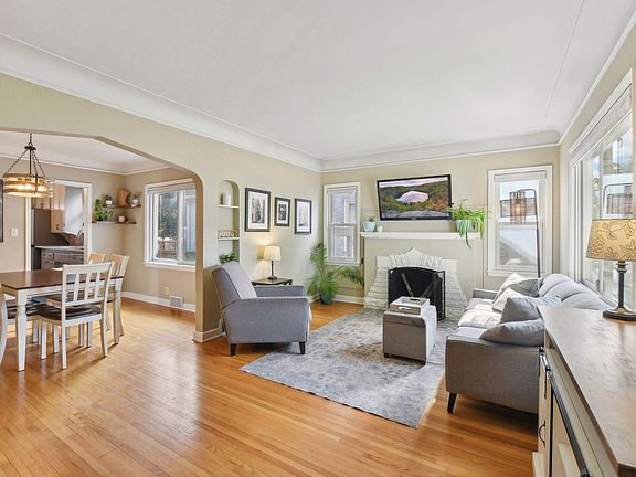 Charm, character, and loaded with in-demand updates! The kitchen shines with quartz countertops, tile backsplash, and stainless steel appliances. It is loaded with cabinetry and countertop space for easy baking and meal prep. Living room and dining room provide great entertaining spaces for family and friends. Two bedrooms on the main floor. Renovated bathroom combines board and batten, hex tile, and subway tile to create a stylish and on-trend look. Closet organizers in the main floor bedrooms and entry closet provide great storage and functionality. The upper-level primary suite is outstanding! Beautiful bathroom, nice sized closet, large bedroom, and added flex spaces for utilizing every inch of this oasis! Lower level boasts an amusement room, office area, flex space, storage, and combined laundry/craft room. This home lives large with its timeless layout. The fenced-in backyard is well-appointed with raised bed gardens, grill area, deck, and play space. Beautiful oak floors, newer Pella & Andersen windows, and new roof. Steps to Minnehaha Creek - this location and this home's amenities are a winning combination!