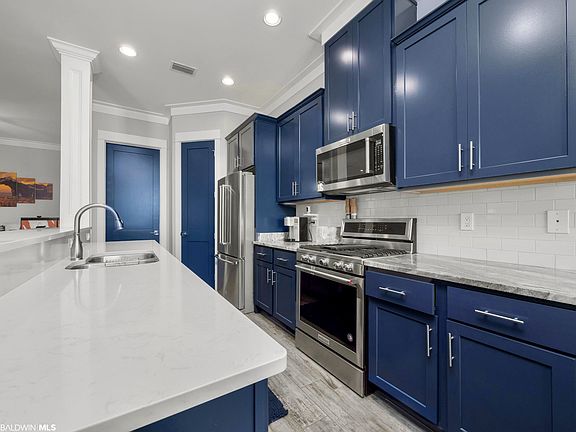 Updated Cypress Village Truland built home which features 3 bedrooms and 2 baths. Enter into the grand entrance full 8 foot wood door into a great open floor concept. Open spaces in the living/dining/kitchen make this beautiful home feel very open and spacious. Beautiful open kitchen with updated beach cabinets with Granite counter tops. New Carpet in the bedrooms, wood styled tile, newer stainless appliances, gas range, wainscoting on select living rooms walls, very spacious separate walk-in closets in the master. 5 Piece master suite including a garden tub for soaking and and standalone shower. Bring your golf cart and enjoy this cozy community. Amenities include water park like pool area with a waterslide, lazy river, zero entry pool, BBQ area. Newer Metal Roof, newly painted cabinets and doors, carpet. Fenced in back yard for the dogs and little ones. Close to everything! Orange Beach new High School and Middle school are across from this community. Walking Distance to concerts and dining at the Wharf. 5 mins to the local beaches!