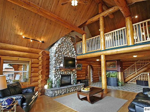 Fabulous log home is unique in every way. Large south facing windows await you as you enter the front door of this 2 story home plus daylight basement. The gourmet kitchen features beautiful wood cabinets with functional slide-outs, dual ovens, a spacious granite island with built in gas stove and down draft venting, plus full tile backsplashes. The main level living area highlights scribe on scribe fitted logs showing the high level of attention to detail that infuses this home from top to bottom. The 2 story river rock fireplace compliments the real wood flooring and makes the living area a showplace, while creating a warm and inviting area to relax. The main level is also home to a large bedroom with a private balcony and a full bath. The daylight basement is perfect for dual living situations with a zero step entry from the 2 car garage, a large family room with custom wood sitting area, and bookshelves plus space where a dining area could be. An additional bedroom and full bath complete this living space. The master suite is located on the second story as well as two bedrooms, plus a bonus loft area. Step out of the hustle and bustle to truly relax in the master suite with a spacious walk-in closet, private bath with a step in shower and jetted tub to take the stress away. A 30' by 50' 2 story shop is perfect for your hobbies or park your RV inside, with 12' garage doors. The shop is also wired with 220 power and there is water to the outside wall. If you enjoy animal husbandry, there is over an acre of fully fenced area for animals to roam.