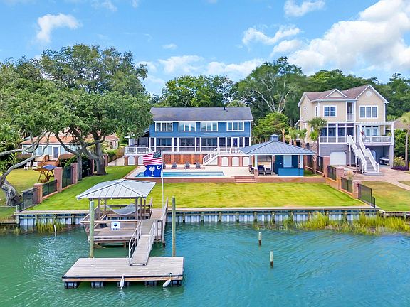 How SWEET it would be to call this home...an exceptional 5-bedroom, 5 full bath, 2 half bath estate nestled on a rare double lot with an impressive 100 feet of serene creek-front property with panoramic creek & ocean views. This fully furnished residence is a perfect blend of elegance and modern convenience, offering over-the-top attention in every detail. Maintained and professionally designed interior by Rose Arbor, where high-end finishes are found throughout the furnishings, fixtures and decor. Renovated & basically a new home as of 2019 and 2024 upgrades including: walls with footers, brick work & fencing, porch foundations, brand new swimming pool with electronic cover and new equipment which includes a natural gas pool heater along with an electric pool chiller to keep the pool clean, safe and enjoyable all year round! New pool deck, pool house with outdoor fireplace, sink and restroom, new in-ground drainage/piping, two new porches, new extended roof on south side and front awning, professional landscaping including 30+ palms with landscape lighting, and base material with drainage out to sea wall, new vinyl sea-wall with a rasied trex deck cap, new shutters & brick accents, and a restructured driveway to allow for double the amount of parking. There is a boat lift permit in place along with plans and space to add a "boat house". No expense has been spared! The attention to detail is amazing including the strategic brick work, for example: the pool deck has a decorative square piece of brick to conceal the functional drains rather than using a conventional drain cover that interrupts the aesthetic of the surface. The well-appointed home offers over 4,200 heated square feet of thoughtfully designed living space with views from each room. The open-concept layout that flows effortlessly from one room to the next with abundant natural light pouring in through large windows across the front of the home. A standout feature of this home is the residential elevator, making it easy to move between floors. The main level includes an open concept kitchen and living area with hardwood flooring, granite countertops, gas range, stainless steel appliances, with an adjoining family room and dining area which leads out to a full-length screened in porch. There are two primary suites on each level. On the second level you'll find four generously sized bedrooms, including a versatile oversized bunk room or playroom—ideal for kids, guests, or even as a creative space. There is an extra living space ensures everyone has room to relax or gather without crowding the main living areas. Conveniently located on this level is a dedicated laundry room, keeping daily routines running smoothly. Whether you're hosting family or friends, or offering the home as a rental, there is plenty of space, privacy, and functionality. Outdoor living at it's finest including: newly constructed porches, a brand-new custom swimming pool, and an impressive pool house, this home creates an outdoor oasis ideal for year-round enjoyment. Specifically the pool house includes: A fireplace and built-in space for firewood, full bathroom, mounted TV and sitting area and a bar area for seating. This waterfront property features a private boat dock designed for both convenience and relaxation, offering direct access to the inlet and open ocean—a true boater’s dream! The possibilities are endless here, The lush lawn stretches toward the creek, creating a natural backdrop ideal for weddings and private parties as you can see in some of the photos. A great venue location with plenty of parking! Walking distance to restaurants and entertainment! Properties like this are truly rare—offering luxury, space, and unmatched access to water and outdoor living. Don’t miss your chance to own this one-of-a-kind coastal retreat. Opportunities like this don’t come around often!