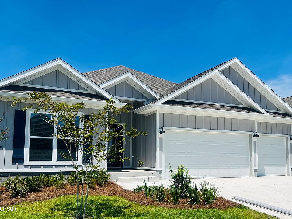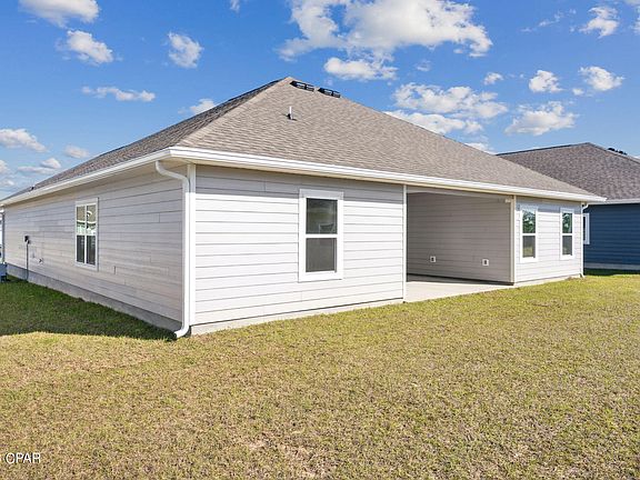 The Destin is a single story detached home that is in the highly desirable community of Titus Park. Located on the north east side of Panama City, Titus Park is a short drive to downtown Panama City, the Gulf of Mexico with sugar sand beaches, Tyndall Air Force Base, shopping, dining, and more! The home has a private entrance with concrete pathway, steps, and designer landscaping. Inside, you are warmly greeted by engineered vinyl plank floors that lead to a bright and open floor plan seamlessly connecting the kitchen to the living room and leading to the inviting, sunny backyard. Meticulous attention to detail is presented in the kitchen with granite countertops, white cabinetry with brushed nickel knobs, and stainless steel Whirlpool appliances which includes the following: stove, dishwasher, and microwave. A 10' tray ceiling with beautiful crown molding gives the living area have a very open feel. The 1st bedroom is located directly off of the living area and also features a tray ceiling with crown molding, and a bathroom featuring a double vanity, large shower, full size soaking tub, and a walk in closet. There are 3 additional bedrooms located adjacent to 2 other full bathrooms. The back patio is a wonderful entertainment space for family and friends. There is more than ample storage available in the 3 car garage. New homes in Titus Park also feature a smart home system that includes a KiwkSet Keyless Entry, Skybell doorbell, automated front porch lighting, an Echo Dot, and a Qolsys touch pad, and customizable LED lighting. For more information, call model office at (850) 775-2027. Our model home is open Monday through Saturday 10-5PM and Sunday 1-5PM.