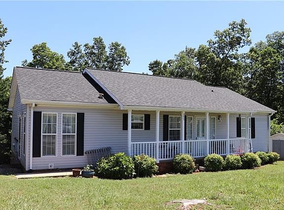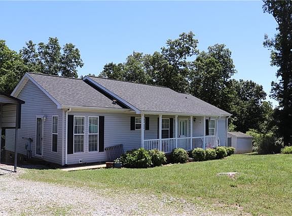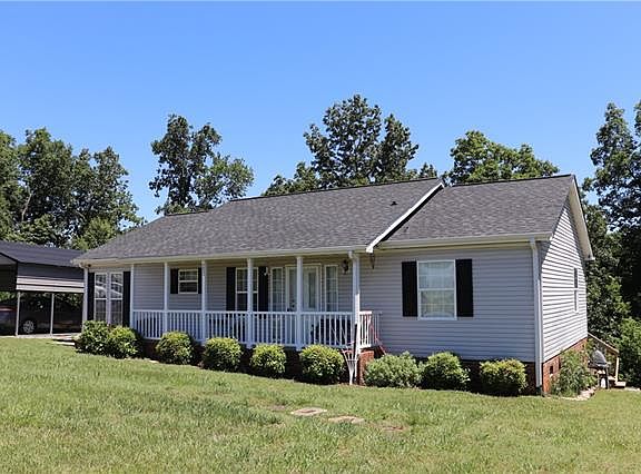 Vinyl and Brick 3 Bedroom, 2 Bath Home on .70 acre located in southern Caldwell County outside the city limits. Close access to Hwy 321 with a view of Lake Hickory from the front of the property. The kitchen offers plenty of cabinet space, coffee bar area, breakfast area and the kitchen appliances remain. Laundry closet off the kitchen. Crown molding throughout. Master suite with 2 closets and a spacious shower. Split plan with 2 additional bedrooms and a full bath. Per the seller, the roof was installed approximately 3 years ago. Detached double carport. Storage building and window treatments remain. Home is being sold AS IS. Deck will be painted prior to selling.