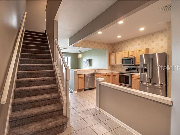 LOCATED IN THE GATED COMMUNITY OF VALHALLA WITH AMAZING WATER & SUNSET VIEWS AND NEW WIDE-PLANK VINYL & CARPET FLOORING. A fantastic location highlights this 3 Bed, 2 1/2 Bath townhome. Crisp, clean kitchen, with stainless steel Kitchenaid appliances, opens to the dining area and spacious Great Room with sliders to a screened lanai with pond views. A half-bath is right off the main downstairs living area for homeowner's convenience. Upstairs, the Master Suite has a large Master Bath and a walk-in closet. The secondary bedrooms share the secondary bath and Bedroom 3 is currently being used as a home office with cabinet built-ins. The laundry area is also upstairs for homeowner's convenience. Active lifestyles will take advantage of the pool and miles of sidewalks to walk, jog or bike. You'll enjoy the common areas with plenty of shade and the pristine landscaping that defines this community. The best part? A short walk to the community pool, mailboxes and guest parking and nearby shopping, restaurants, movie theater, as well as access to 301, I-75 and the Crosstown for an easier commute. Thank you for taking the time to see this one in person.