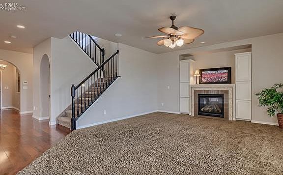 Stunning Cordera home featuring uncompromised attention to detail, on a walk-out lot with sweeping views of Pikes Peak & the Front Range.Gleaming hardwood floors lead to the living room featuring a gas fireplace with custom tile hearth & built-in cabinets. The kitchen overlooks the living room and is adjacent to the dining room making a perfect flow for entertaining. The gourmet kitchen boasts Jenn-Air appliances, gas stove, double ovens, quartz counters, Aristokraft cabinets with pullouts, large pantry & dining nook. MORE