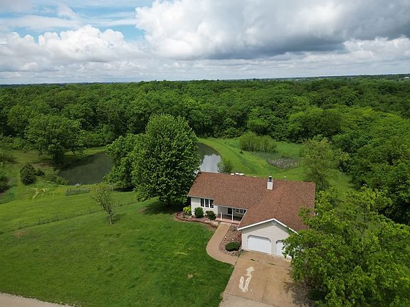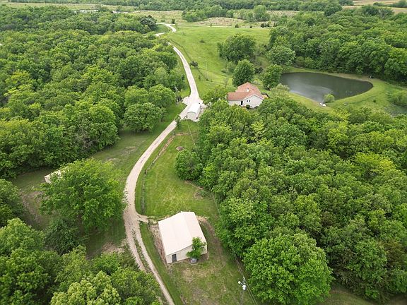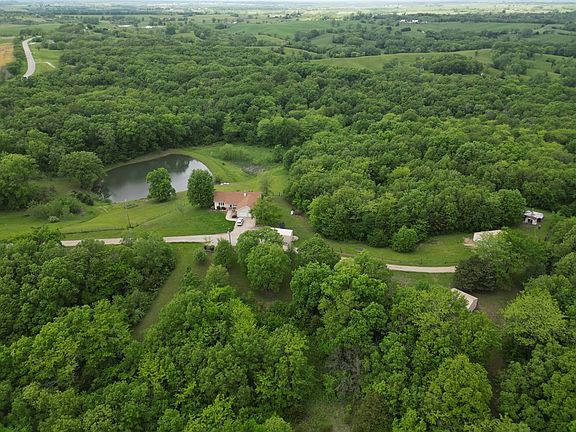 Quality Built Home On 20 Acres With Panoramic Views!! This peaceful paradise offers country living at it's best with a nice large stocked pond, 20acres of timber and pasture mix which offers great hunting, two shops with concrete floors and carport!! The quality built home offers an open concept floor plan with a fireplace with built-in book shelves on both sides, 4 Bed (3 BR have walk-in closets) 3 bath, large laundry room on the main level, 2 car attached garage, full deck off the back to enjoy the gorgeous scenery, full primarily finished walkout basement that leads out to a large concrete patio, wet bar, pellet stove and huge storage room that could be finished for two more bedrooms. Located just off Hwy E, 5 miles west of Milan. Call Listing Agent Cherrie Liebhart at 660-412-7294!
