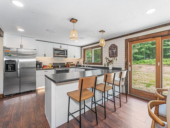 An affordable surrounding Eagle River, WI home is in reach with this one! The recently updated 1,392 sq. ft. main level is totes adorbs featuring laminate flooring, recessed TV & modern electric fireplace, and new kitchen and bathrooms. It houses the primary en suite complete with a walk in closet and his/her sinks, along with the 2 other bedrooms and 2nd BA. The full 1,392 sq. ft. unfinished basement is a blank canvas. Need more living space? Finish it into a family/rec room. Need more bedrooms- there's room for that too! Whatever you can dream up there is space galore. The home sit's on 1.98 acres and has a 21'WX30'LX2.5'D concrete pad where one can keep is as is for parking, or build a garage on top of. Located just 5 min from downtown ER and within a stones throw of the ATV/snowmobile trails, and near Torch Lake hiking, and Conover Equestrian trails. What a great way to get your foot in the real estate door and start building equity, schedule your showing today!