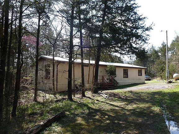 3 Bedroom 2 bath home on 4.4 acres just West of Beaver, Arkansas. This 1,736 sq. ft. manufactured home has 2 shop buildings, 1 has a half bath. Seasonal Stream and waterfall are just off the large front deck. Property is located just across from Rail Road Winery yet tucked back in the woods for a nice private setting. 2 sided wood burning fireplace, refrigerator, washer/dryer & New Furnace and Air Conditioner installed in 2017Gneeds some carpet paint and general TLC. Would make an ideal weekend cabin or rental property.