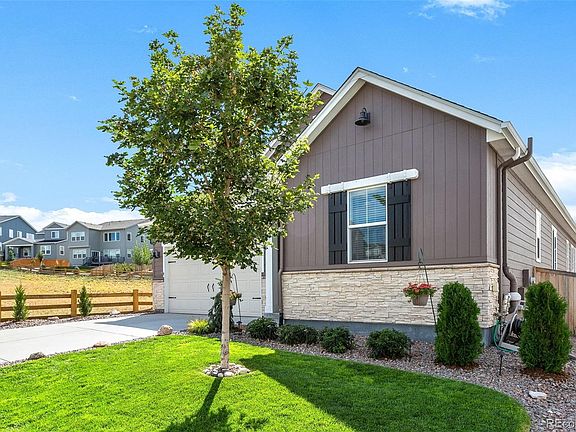 Welcome home to this stunning property in Castle Rock! As you walk in past the charming front porch into the spacious foyer entry with wood laminate floors that continue to the main living area into the giant kitchen. Plenty of cabinets and roll out shelves give you all the storage one can ask, plus an oversized island for entertaining, & a walk in pantry. Stunning stainless-steel appliances highlight this gourmet kitchen, with a gas cook top & double in wall oven with microwave. Sliding glass doors lead the way outside to your own oasis, perfect for relaxing and entertaining, accompanied by a newly landscaped backyard. The laundry room and two bedrooms plus a study with French doors are also on the main level. The owner's suite has five-piece bath, dual tall vanities and soaking tub, and a walk-in closet. The second bedroom on the main floor has a full bath and along with another half bath for guests. As you walk down the stairs to the basement, you'll be welcomed by the ultimate game room and spacious entertaining area, accompanied by its on wine room! The 3rd and final bedroom with a 3/4 bathroom provides flexibility for family or guests. Located in the Terrain community sitting next to parks, restaurants, retail stores, and downtown Castle Rock. Set up a showing today and don't miss out on this amazing home.