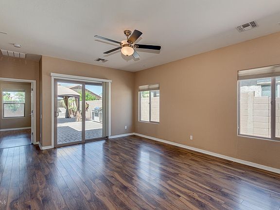 UPGRADES!! Gorgeous, 4 bedroom/2 Bath professionally clean, ready for move in!! Fresh paint on all exterior facia. Beautiful cabinetry, light counter tops and wood plank flooring from entry, through to family room! The kitchen sparkles with stainless steel appliances, upgraded gas stove, new faucet, new garbage disposal, and a new $6000 upgraded top of the line Kinetico entire home water softener system w/purified water system in kitchen as well! Breakfast nook opens right off the kitchen. Epoxy garage floor, custom built-in storage cabinets in garage. Professionally landscaped yard front and back w/ lush green grass borders with curbing and great size yard for kids & pets. Thousands of dollars of beautiful exterior pavers from when you first walk out of the home onto the patio extending all the way to back fence, where there is a sitting area & outside fireplace for ambiance and for the coldest nights of entertaining with friends and neighbors. Bella Via master planned subdivision features a community amphitheater, dog park, central fountain, splash pad, basketball courts, tot lots, miles of pedestrian trails, old world style social gardens, exercise stations, Ramadas and BBQ stations & more. Gilbert schools/Mesa taxes. Close to shopping & freeways.
