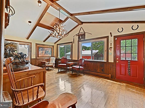 A horse or livestock owners dream with 34+ acres. The farmhouse has an open, light-filled layout with 3 beds, 3 full baths, vaulted ceilings, exposed beams, stone fireplace and many upgrades. Superb owner suite boasts huge bedroom, private deck, full bath and private office with picture windows. Large family room with wood stove and access to multiple decks are perfect for entertaining and enjoying views of the farm grounds and pastures. Updated country kitchen with custom cabinets and granite tops, plus large island with bar. This farm has fenced pastures with an awesome pond, creek and additional fields for hay. Fully operational horse/livestock facilities include barn with 8 - 12x12 horse stalls, finished tack room, finished feed room and 16 x 60 covered storage area, 32 x 50 loafing area off horse barn and bank barn with stalls in the lower level, plus additional outbuldings. Large 4 car garage and workshop has XL overhead doors for oversized vehicles and additional equipment storage on the lower end. You must see this property to appreciate the location, land and extras for any livestock owner. Seller may consider lease to own if financing is acceptable.