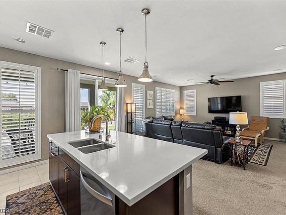 55+ gated community of Ovation at Mtn Falls Golf Club. Extended garage for large vehicles, plantation shutters throughout, ceiling surround sound home theater in living room, and finished landscaping. Open kitchen boasts large island w/ pendant lights, walk-in pantry, upgraded cabinets w/ soft close hinges and whirlpool stainless steel appliances. Primary suite has dual sinks, walk-in shower, walk-in closet w/ door to patio. Backyard features covered patio with pavers, artificial grass, electric hook ups for entertainment. Premium lot w/ no rear neighbor offers privacy, epic views, walkway along side of home, and grand curb appeal. Soft water loop installed. Community offers heated pool, 2nd clubhouse, billiard lounge, tennis, pickleball, and gym. 18-hole golf course, main clubhouse, driving range, restaurant. Ovation community offers exclusive clubhouse/amenities separate from Mtn Falls, ovation residents have access to both.