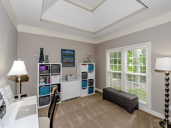 - Interior: Foyer - Entrance, Ceilings 9 Ft Plus, Double Vanity, Walk-in Closet, Ceilings - Trey, Carpet, Foyer - 2 Story