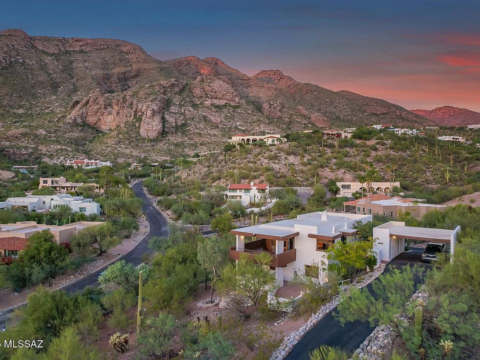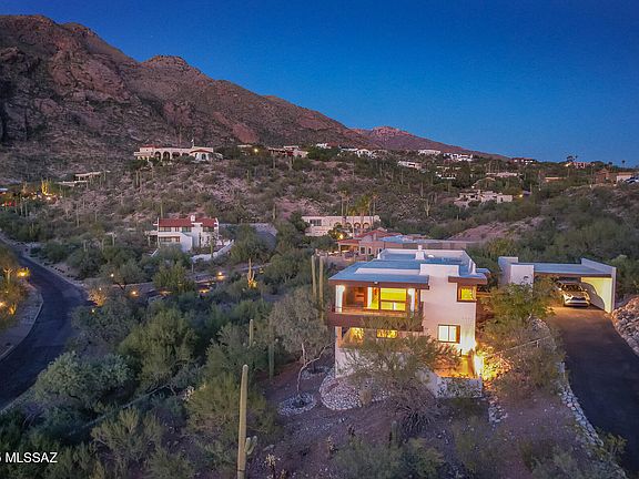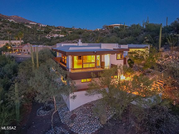 Experience privacy & BREATHTAKING VIEWS in this exceptional 4BR/4BA one owner home designed by renowned architect David Tyson. Nestled on a 1.15 acre hilltop lot in the prestigious Skyline CC, a guard gated golf course community. Expansive living room w/beamed ceilings, fireplace, wood floors & panoramic views. Remodeled kitchen w/stainless steel appliances, granite counters & custom cabinetry. Lower level perfect for guests with 2nd primary bedroom and a kitchenette, ideal for visitors. Freshly painted inside and out, updated electrical, driveway resealed and much more! Seamless indoor-outdoor living w/ extensive wrap-around covered balconies and patios perfect for entertaining while enjoying STUNNING views. See agent only remarks regarding offer. See floor plan in attached documents. Skyline Country Club offers a Championship golf course; State-of-the-art fitness center; Tennis and pickleball courts; Olympic-sized pool; Elegant clubhouse w/panoramic views, perfect for social gatherings & events. This exceptional home blends luxury, privacy & entertainment in one of Tucson's most exclusive gated communities. Don't miss this rare opportunity--schedule your private showing today!