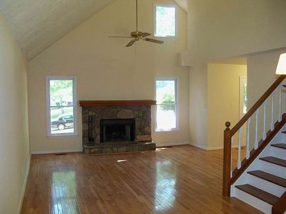 This is a true value that is priced to rent immediately! Hardwood floors, Large and open floor plan, gas fireplace, huge finished basement, master suite with dual walk in closets, master bath features separate shower and garden tub, huge vaulted ceilings in the family room, stainless steel appliances! Fenced in back yard too! Beautiful family friendly community that features tennis courts, basketball courts, and playground! 1 year