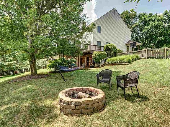 This well-cared for home is so cheery and bright inside with fresh paint and gleaming hardwoods throughout! The spacious home office with glass French doors is a perfect space to work, while the dining room is a welcoming gathering space for friends or family. The light-filled kitchen and great room at the rear of the house are sun-kissed and immaculate! Upstairs, the owners suite features skylights, walk-in closets, and bathroom with freshly painted cabinets. The three additional bedrooms share a hall bath - also with updated cabinets! The finished basement features a large play/rec room, huge laundry/storage room and full bath. Outside you'll love the huge deck, backyard playset, and fire pit in the private, fenced rear yard!
