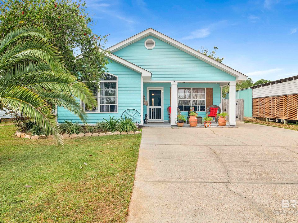 Easy living with no stairs, enjoy a 3 bedroom 2 bath cottage in Orange Beach at the end of Nana Brown Ave with a view of Wolf Bay from the front porch. This home comes with plenty of parking, fenced yard with new pergola and large concrete patio to enjoy the outdoors. Master bedroom with an-suite and walk in closet. Tiled floors though out house and wood in bedrooms. SS appliances, laundry room with washer and dryer and storage. Conveniently located to restaurants and stores. Walk to schools and Orange beach community center or take your Golf cart. Move in ready, everything works. Priced to sale. All measurements are approximate and should be verified by buyer or buyer agent.