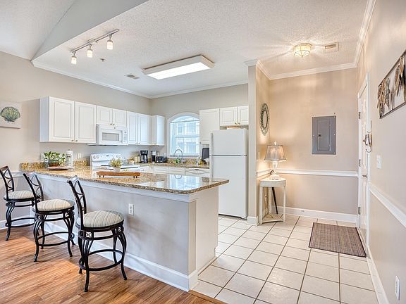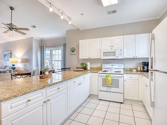 Situated within the lush surroundings of the Myrtlewood golf course.  This beautifully furnished 2 bed 2 bath condo offers the perfect blend of comfort and convenience, ideal for both vacation getaways and as a second home. This end unit provides a serene setting with vaulted ceilings and an extra window, creating a spacious and airy feel throughout. With no unit above you, enjoy added privacy and tranquility.  Step into the sleek kitchen featuring granite countertops, perfect for preparing delicious meals or entertaining guests. The open floor plan seamlessly connects the kitchen to the living and dining areas, creating a wonderful space for relaxation and socializing.  Both bedrooms are generously sized, offering comfortable accommodations for you and your guests. The master bedroom boasts an ensuite bathroom, providing a private oasis to unwind after a day of beach activities.  Speaking of the beach, this condo is just a short golf cart ride away from the pristine sandy shores and vibrant shopping destinations. Whether you're soaking up the sun or exploring local boutiques, everything you need is within easy reach.  Looking to generate extra income? This condo can be rented short term, offering a fantastic investment opportunity. Take advantage of the high demand for vacation rentals in this sought-after location.  Don't miss out on this incredible opportunity to own your slice of paradise. Schedule a showing today and start living the beach lifestyle you've always dreamed of!
