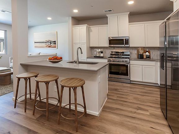 Howes interior two-story townhome by Hartford Homes. New construction. Open concept floor plan. S.S. dishwasher, fridge, gas range, microwave. Lancaster shaker maple white painted cabinetry with crown molding. Manhattan gray colored quartz countertops throughout. Vinyl plank flooring in entry, kitchen, dining, baths, laundry and living room. Second level laundry room with washer and dryer included. All bedrooms on second level. Central a/c. Garage door opener and keypad. Bench w/ cubbies and coat hooks off garage entry. Fenced in front yard. Attached 2 car garage. ASK ABOUT HARTFORD'S CURRENT PREFERRED LENDER INCENTIVES Estimated Nov/Dec completion. Options have been selected and changes cannot be made.