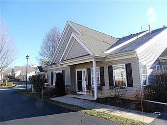 Bright and open concept ranch style 55+ condo in beautiful Millbrook Chase * Large open living room with cathedral ceiling and nice laminate floor flows into dining room * Modern kitchen boasting stainless steel appliances * Spacious master bedroom features cathedral ceiling, tile master bath and a walk in closet * 9 foot ceilings throughout * Spare bedroom also has a walk in closet * First floor laundry and utility room off of the kitchen * Economical gas heat and hot water * Central air * 15 x 9 hobby room or office * $325 a month condo fee covers exterior maintenance, lawncare, snow removal, trash pick up and two clubhouses * This condo is light, bright and in move in condition!