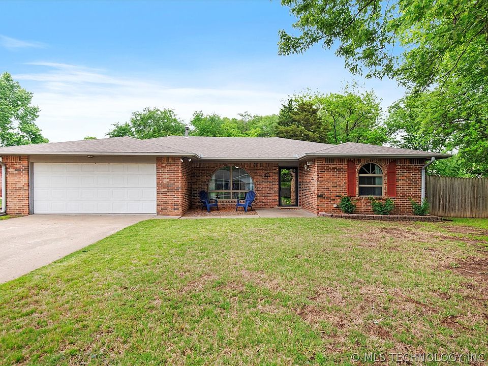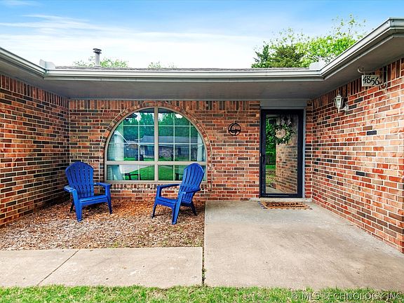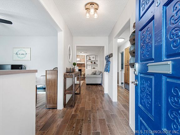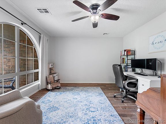 You'll find them here - all the updates you've been looking for! This spacious floor plan is perfect for those needing a home office. Wood-look tile flows through all living and heavy traffic areas. The fresh interior paint job in modern colors, set with the nice wood look tile create the perfect backdrop for your decor. Newer SS kitchen appliances. Dining room is oversized, with wall of display cabinetry over built-in serving buffet, easily accommodates a crowd. Separated front living area could be office, music room, playroom - with graceful arched window bringing in loads of natural light. The cozy den has wonderful fireplace focal point, flanked with bookshelves. You will love the size of the Primary Bedroom with dressing area, ensuite bath, walk-In closet, and door to covered patio. Covered patio overlooks the private backyard, creating an outdoor space you will love to spend time in. Located at the end of a non-outlet street, with a convenient entrance to pathfinder parkway, leading to Sooner Park.