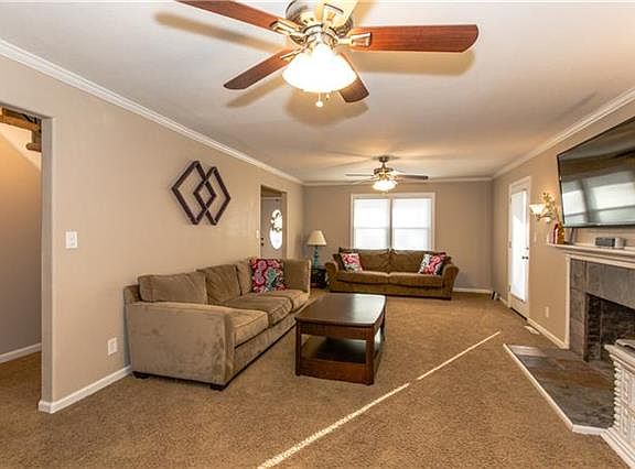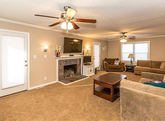 - Features: Carpet, Ceiling Fan(s), Fireplace