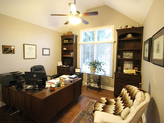 Over 2,980 sq. ft. (per assessor) in this immaculate 4 bedroom, 2.5 bath, one level home with 2 living areas in Ironbridge. Built in 2016 within minutes of Twin Oaks Golf Course. Split bedroom floor plan. Great room has gas log fireplace and built-in bookcases. Large kitchen has stainless steel appliances. granite countertops, beautiful cabinets, breakfast bar, wall oven, built-in microwave, and big pantry. Big living room off kitchen has view of back yard. Spacious master bedroom has a tray ceiling. Master bath has 2 vanities, separate jetted tub and step-in shower. Good sized walk-in closet. Two more bedrooms with full bath located on the south side of home. 4th bedroom is used as front office. Engineered hardwood flooring in kitchen, living room off kitchen, office and hallway, Large laundry room and 1/2 bath located off the kitchen and garage entry into home. Screened-in patio. 3rd car garage is over 27 feet deep. Storage room / workshop has shelves and is accessed from the back yard.