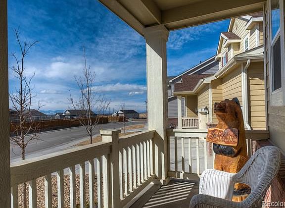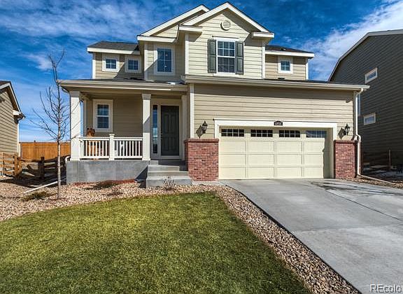 Barely lived-in home with mountain and city skyline views! Enjoy all the perks of a new home without the hassle and cost that comes with new construction! Bright Lennar Heritage floorplan features hardwoods in entry and kitchen, a large great room that is perfect for family gatherings and $23K in upgrades throughout. The gorgeous kitchen includes dark cabinets and dramatic contrasting light Ashen White granite, plus glass tile backsplash, a gas range and stainless appliances! Upper level offers good sized bedrooms, a jack-n-jill full bath, convenient laundry room and a small loft - great office space or reading nook! Master Suite includes an enormous walk-in closet, 5-piece bath with granite, tile and brushed nickel accessories, plus recessed ceiling with crown moulding and a ceiling fan. The extended covered composite deck is perfect for enjoying Colorado's weather and your private yard. Full unfinished basement is a blank canvas for you to finish as you wish. Turn-key, great value!