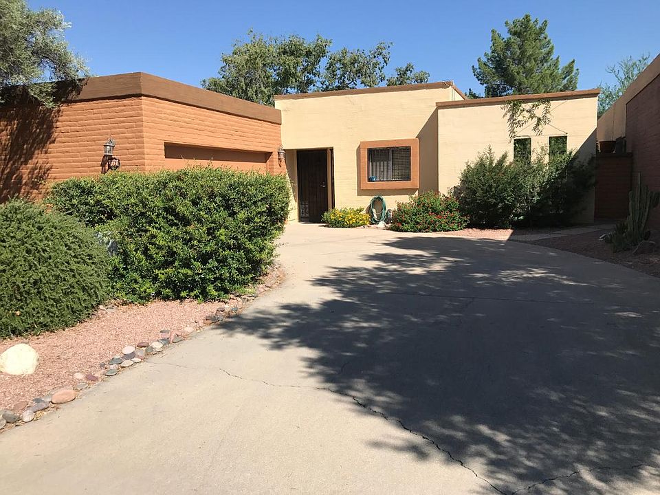 LOCATION, LOCATION, LOCATION Beautiful property located right in the center of town at Swan and Grant. Arcadia Square is a quiet, private community located adjacent to Crossroads Festival (Frys, Starbucks, Baggins, Bed,Bath & Beyond), and the intersection has Trader Joe's, PetsMart, Dunkin Donuts, Walgreens and more all within walking distance, Perfect for older couple not wanting to drive much or enjoy a quiet walk in the neighborhood with the dog. Minutes from Tucson Medical Center and Health South and easy access to Davis Monthan Air Force Base. and 10 minutes to UofA and University Medical Center. Two private neighborhood parks, one has playground. Neighborhood pool, heated in winter. 3 bedroom with lots of closet space and two upgraded bathrooms. Lovely updated kitchen with wood cabinets, beautiful countertops and new appliances, Open living room / dining space with lovely fireplace. The master bed room offers a peaceful retreat tucked away in the back of the home with it's own access to your beautiful backyard. Nice size landscaped backyard with a well shaded patio offering lots of outside space for entertaining. 2 car garage with shelving and two car driveway Central air conditioning with ceiling fans throughout Indoor laundry room with washer and dryer Tenants responsible for all utilities/ HOA fee paid by owner.