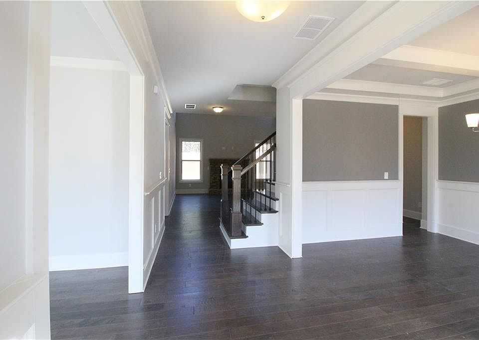 ALMOST NEW HOME! This STUNNING and ELEGANT home will take your breath away! Expansive 2 story Family Room w/stone fireplace, GLEAMING h/woods throughout, Granite and SS appliances. Bed/ full bath on main level. Open concept design w/ lots of modern features: covered back porch, 5" wide hdwd floors on main, white kitchen cabinets, kitchen island, granite in kitchen & baths, tile floors in all baths & frameless master shower, hdwd stairs, coffered two story family room ceilings, heavy trim, FRIDGE, WASHER / DRYER & BLINDS...