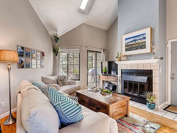 This lovely penthouse is move in ready! Just blocks away from City Set, Infinity Park, Cherry Creek shopping mall, Cherry Creek bike path, dog parks, breweries, and so much more! You do not share ANY walls with ANYONE! This penthouse offers 25ft vaulted ceilings, new stainless-steel appliances, new faucets, new disposal, new granite counter tops in kitchen & bath, cherry hardwood floors, new light fixtures throughout, wood burning fireplace, central heat and air, washer and dryer included, large double pane windows, sky light, covered balcony that overlooks the green belt, reserved parking spot, plus several other parking spots in the open parking lot, and finished attic for extra storage.