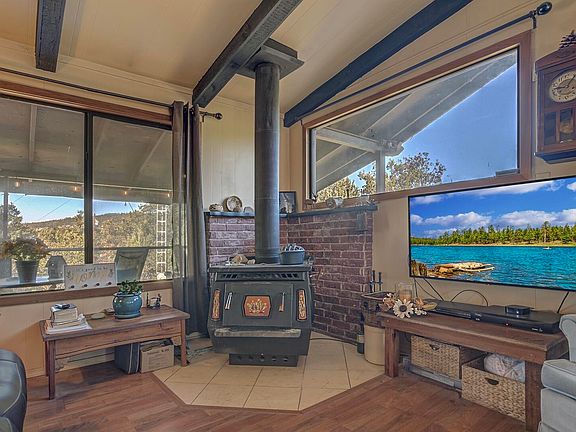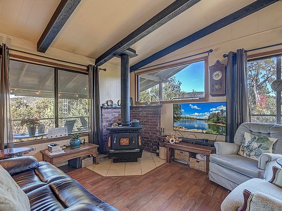 Beautiful, Peaceful .97 acre property that is completely fenced with private well. This cozy cabin has a wood burning fire place that will keep you warm all winter, AC/Furnace as well. Beautiful wood beams in the Livingroom, up to date kitchen, wood floors and so much more. Come sit on the covered deck and enjoy the summer breeze, peacefulness and the amazing mountain views. New roof, 2 RV hookups and oversized 2 car garage with shop and storage room. There is a greenhouse for those who like to garden. Come see for yourself.