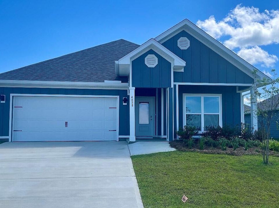 New construction home in Titus Park, located in Panama City. This Rhett floorplan at 4858 Sandhill Way, Lot 182 features 4-bedrooms 2-bathrooms and has 1,799 sq.ft. This is an open concept floorplan with upgraded finishes throughout. You will find 9-foot ceilings with 10-foot trays and beautiful crown molding. The Rhett also has EVP flooring, quartz countertops, a large kitchen island with cabinetry on both sides underneath and brushed nickel hardware. This floorplan has energy efficient windows to allow lots of beautiful natural light. The primary bathroom has a beautiful garden tub, perfect for relaxing, and a spacious shower with a glass enclosure. Titus Park is in Panama City, Florida and is only minutes away from Tyndall Airforce Base! This large-scale multi-phase community is located off Highway 390 at Highway 231, centrally located for an abundance of shopping, restaurants, and great schools! Beautiful white sands beaches are just a short drive from your doorstep. Access the bay for fun and fishing by use of the public boat ramp only 3 miles away. There is a new Publix shopping center across the street from the community entrance.