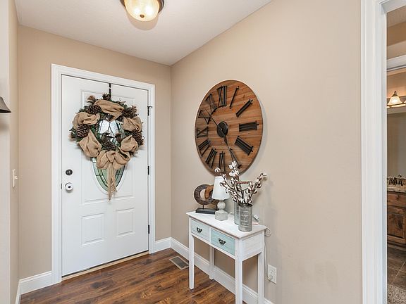 LOOK NO FURTHER!! This gorgeous home greets you with an open floor plan. Large living room with recessed ceiling and gas fireplace. Kitchen has tons of knotty alder cabinets, granite counter tops, tile back splash, island sink with raised breakfast bar, pantry in laundry room, and all appliances stay including refrigerator. Huge master bedroom with recessed ceilings, walk-in closet and double sinks. Brand new shed in back yard stays! Big deck that is partially covered. So many extras: granite window sills, walk-in closets, wood & tile floors, 4 inch white trim, several dimming switches throughout the home, privacy fenced yard with double gate, and in-ground sprinkler system!