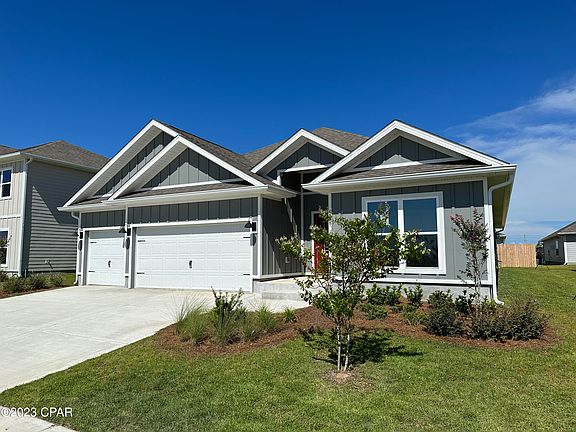 The Destin is a one-story, four-bedroom, three-bathroom, three-car garage floorplan. As you enter this home you are covered by a small front porch and walk into a foyer. The home's first two guest bedrooms and one guest bathroom are off of the foyer. If entering through the garage you will walk directly into the laundry room and then into the home's kitchen and living room area. The kitchen has granite countertops and Whirlpool Stainless steel appliances. Towards the back of the home are the third guest bedroom, guest bathroom, and main first bedroom. Titus Park is in Panama City, Florida and is only minutes away from Tyndall Airforce Base! This large-scale multi-phase community is located off Highway 390 at Highway 231, centrally located for an abundance of shopping, restaurants, and great schools! Beautiful white sands beaches are just a short drive from your doorstep. Access the bay for fun and fishing by use of the public boat ramp only 3 miles away. There will soon be a Publix shopping center across the street from the community entrance. Titus Park highlights some of the most beautiful floorplans, which have amazing features. We are building both our affordably priced Express Homes as well as our Traditional Series with upgraded finishes both inside and out. Contact a D.R. Horton Sales agent for more information on everything that Titus Park has to offer! A standard Smart Home package includes a KwikSet keyless entry, Skybell doorbell, automated front porch lighting, an Echo