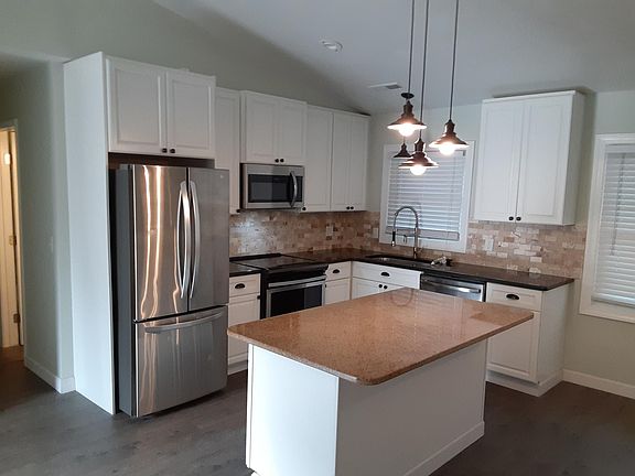 Brand new interior with granite counter tops in kitchen, stainless appliances, engineered floors, tile baths, wood burning fireplace in open living area, fenced back yard with screened in open porch on deck. Single garage with laundry and new door opener.