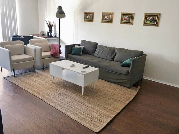 Fresh paintWood-like flooringLarge windowsNatural lightEat at bar