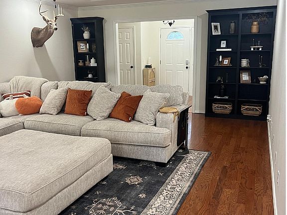 ONE LEVEL - - SPLIT PLAN. This home has a feel of almost new, it is light and bright, and all rooms are large in size. The entire interior has been professionally painted and new hardwood flooring throughout. Has a new hot water tank in 2022. The kitchen and all baths are tile flooring. Special featured ceilings elevate the interior, great gas fireplace and vinyl windows. The large kitchen features granite counters, nice breakfast nook and abundance of storage. The master bathroom features a double vanity, nicely sized tub, and large tiled shower. The backyard has the feeling of being very private and is equipped with two sheds that provide plenty of storage. Refrigerator is included.