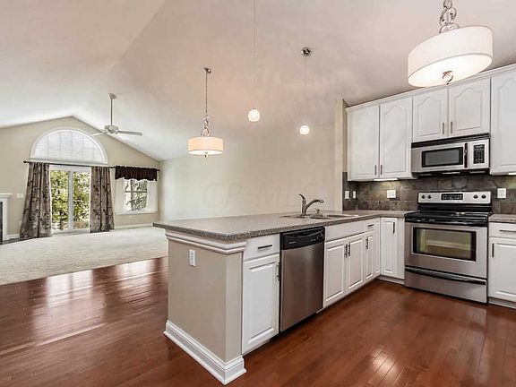 Gorgeous and Move In ready! Tucked away in a private setting this ranch style condo has everything on ground level, making it overwhelmingly convenient! Rich hardwood floors greet you upon entering and flow into the open kitchen which boasts stainless steel appliances and perfect ''eat in'' space. In the great room, curl up by the fireplace with a good book or enjoy family game night. Both bedrooms offer high, vaulted ceilings with ceiling fans. The master bath has a large soak-in tub, shower and extensive closet with built ins. The finished lower level is perfect for entertaining or out of town guests! Storage space is plentiful!! Step outside and enjoy the scenery and secluded patio . Bring in Spring with this Stunning Condo!