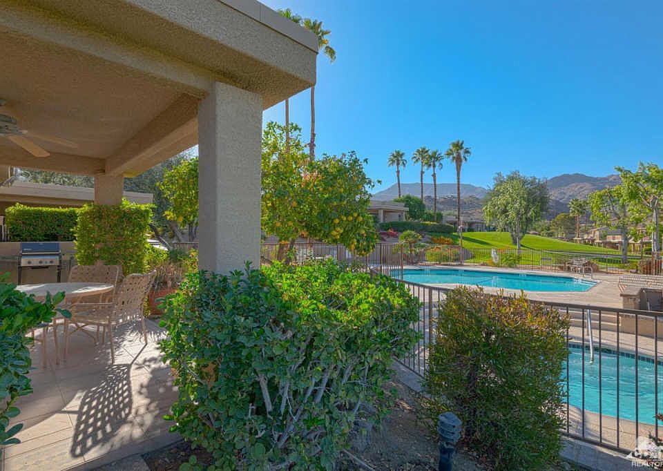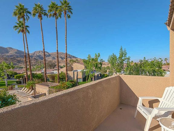 Offered as turnkey furnished long term lease at $2,200/month or seasonal at $4,000/month. Somerset in South Palm Desert, a most desirable location. Close to El Paseo yet away from traffic noise. This 2 bedroom 2 bath unit, with office/den is in immaculate and updated condition. The large private master suite with king size bed occupies the entire second floor and has sweeping views of the mountains and city lights. Guest bedroom has king bed and access to rear patio through sliding glass door. Kitchen is updated and well equipped for entertaining and gourmet dining with new granite counters and upgraded appliances. Den/Office has full sized desk plus smart TV and WiFi. Single car garage is attached with additional attached covered carport plus extra parking for guests. Living room with new furniture and 55 inch smart TV. Rear patio overlooks adjacent pool and spa. There is a wonderful atrium that provides air and light. Tennis courts in community are available. Call to arrange viewing.