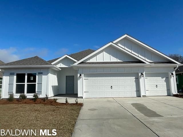 Aventura PHASE 3 now open!! A community located in beautiful Gulf Shores off of County Rd 6. This Hawthorne Plan features 4 bedrooms and 3 full bathrooms. An open kitchen overlooking the spacious family room. Home features granite in kitchen and bathrooms, luxury vinyl throughout, tile in the master shower, and slow close cabinetry. His and her closets in the primary bedroom offer tons of storage space along with access to the back patio. Third guest bedroom features its own bathroom with shower and nice walk in closet!! Home will include Smart Home Package. (see representative for details) Home is being built to Gold Fortified Certification, which may save on home owners insurance. Additional features include builder warranty, hurricane fabric shield protection, and four sided hardie board exterior finish. *Pictures may be of similar, but not necessarily of subject property, including interior and exterior colors. *All dimensions and square footage measurements are approximate only. Estimated completion January 2023.
